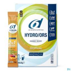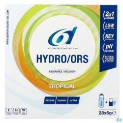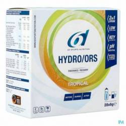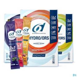 Pendant l'exercice, le corps perd des liquides et des électrolytes par la sueur. Une reconstitution insuffisante des pertes de sueur pendant un exercice (d'endurance), en particulier par temps chaud, aura un effet négatif sur les performances et peut même provoquer des crampes musculaires. Le 6d HYDRO/ORS est une boisson électrolytique hypocalorique utilisée comme source de liquide et d'électrolytes.