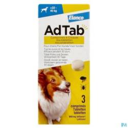 AdTabᵀᴹ est un petit comprimé à croquer à saveur de viande pour chiens qui agit rapidement contre les tiques et les puces. Il s'agit d'un remède sûr et efficace qui commence à agir après seulement 4 heures. AdTabᵀᴹ est efficace pendant 30 jours.