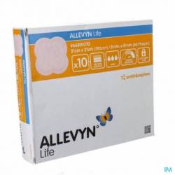 Prise en charge des plaies exsudatives aiguës et chroniques ne pouvant cicatriser que par deuxième intention, superficielles à profondes, bourgeonnantes telles que les : déchirures cutanées, plaies chirurgicales, brûlures du premier et deuxième degré, sites donneurs de greffe, escarres,- ulcères de jambe, ulcères du pied diabétique, plaies infectées, plaies malignes, ulcères fongueux. Ne pas utiliser si le sachet individuel protecteur est ouvert ou endommagé (perte de la garantie de stérilité). Ne pas utiliser les pansements ALLEVYN Life en association avec des agents oxydants comme les solutions d'hypochlorite (par ex.DAKIN) ou du peroxyde d'hydrogène (eau oxygénée) car ces produits peuvent détériorer le composant absorbant en polyuréthane du pansement. Ne plus utiliser si des rougeurs ou une sensibilisation apparaissent. Ne pas découper le pansement car les composants internes du pansement peuvent contaminer la plaie, entraînant ainsi un retard de cicatrisation. Les propriétés antibactériennes du pansement seront également compromises, ce qui peut conduire à une infection. ALLEVYN Life ne doit pas être utilisé seul pour soulager des points de pression, mais doit toujours être utilisé en association avec d'autres supports de décharge de pression adaptés. ALLEVYN Life est un produit à usage unique. L'utilisation chez plus d'un patient peut entraîner une contamination croisée ou une infection. L'ouverture du sachet du pansement altère la barrière stérile; par conséquent, tout pansement non utilisé ne doit pas être conservé pour une application ultérieure.
