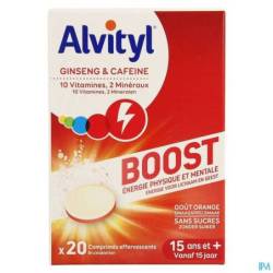 Alvityl Boost associe du ginseng, de la caféine et 12 vitamines et minéraux complémentaires pour :