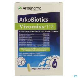 ArkoBiotics® Vivomixx® 112associe 8 souches microbiotiques fortement concentrées, avec 112 milliards d'UFC* minimum par gélule, qui agissent en synergie.