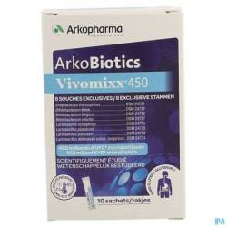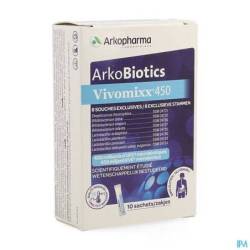 ArkoBiotics® Vivomixx® 450 associe 8 souches microbiotiques fortement concentrées, avec 450 milliards d'UFC* minimum par sachet, qui agissent en synergie.