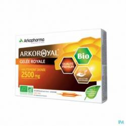 Arkoroyal Koninginnenbrij BIO 2500 mg est un complément alimentaire à base de BIO Koninginnenbrij hautement dosé. Son dosage élevé est particulièrement approprié pendant la période hivernale. Arkoroyal® Koninginnenbrij BIO 2500 mg est formulé sans ingrédients chimiques, sans conservateurs et sans colorants.