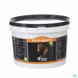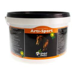 Arti-Sport est riche en chondroïtine, glucosamine et acide hyaluronique pour nourrir le cartilage et améliorer l'action amortissante du liquide synovial. Ce produit est également riche en minéraux, oligo-éléments (manganèse, sélénium, zinc) et antioxydants (MSM, vitamine C, vitamine E) qui contribuent de manière importante au soutien du cartilage, des os, du liquide synovial, etc. Le boswellia serrata a été ajouté pour son effet apaisant sur l'ensemble de l'appareil locomoteur. Chez les chevaux de sport, cet ingrédient aide à soulager les articulations en période de forte sollicitation.