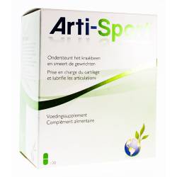 Arti-Sport® est un complément alimentaire avec une composition extrêmement équilibrée en substances naturelles qui soutiennent le cartilage articulaire et optimisent les performances. Arti-Sport® assure la souplesse des articulations et une fonction optimale des muscles et des articulations. Grâce à l'addition d'acide hyaluronique, la lubrification des articulations est optimisée. Les vitamines essentielles (E, C, B1, B2, B3, B5, B6, B12 et M) ont été ajoutées et font d'Arti-Sport® un complément alimentaire d'une qualité exceptionnelle. Arti Sport®est indiqué pour tous les gens qui pratiquent du sport et qui veulent soigner et soutenir de façon optimale leur système moteur.