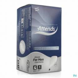 Attends for Men 3 en 4 zijn ontwikkeld voor lichte tot matige incontinentie. Attends for Men 4 is zeer geschikt bij het verliezen van scheutjes tot kleine plasjes urine. De sterk absorberende kern van Attends for Men 3 en 4 zorgen voor een snellere absorptie en langdurige comfortabele droogheid van de huid.