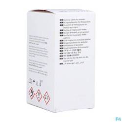 Ne pas mettre les comprimés ni la solution de nettoyage dans sa bouche. Conservez hors de portée des enfants. Contient du persulfate. Peut provoquer des réactions allergiques. En cas de contact avec les yeux : rincer soigneusement à l'eau pendant quelques minutes. Retirer éventuellement si possible les lentilles de contact. Continuer de rincer. En cas d'ingestion : en cas de malaise, contacter immédiatement le