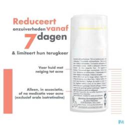• EFFICACE : sur tout type d'imperfections des peaux à tendance acnéique, grâce à la Comedoclastin™**, qui agit à la racine des boutons pour les réduire et limiter leur apparition. • RAPIDE : réduit les boutons dès sept jours*. Évite leur récidive***. Pour une peau plus nette et un meilleur confort au quotidien. • TRÈS BIEN TOLÉRÉ : utilisé seul ou en association avec des traitements médicamenteux (hors isotrétinoine orale), sa tolérance par les peaux sensibles à tendance acnéique est démontrée cliniquement*.