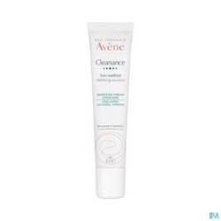 Une peau, douce au toucher, matifiée durant 6h** et hydratée durant 24h* : Cleanance Soin matifiant s'utilise au quotidien et diminue l'excès de sébum des peaux grasses. La brillance est réduite immédiatement et durablement***. Sa texture est mate et non collante. Dans sa formule qui garantit une efficacité immédiate et durable se conjugue une sélection rigoureuse de poudres matifiantes, d'agents hydratants et de la Comedoclastin™, un actif végétal extrait des graines de Chardon-Marie sébo-réducteur. Un soin est respectueux des peaux sensibles, grâce à l'Eau thermale d'Avène qui restitue toutes ses propriétés apaisantes et adoucissantes. Cleanance Soin matifiant constitue également une bonne base de maquillage.