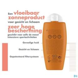 Le Fluide sport SPF 50+, léger et très résistant à l'eau et résistant à la sueur*, est parfaitement adapté aux peaux sensibles des sportifs, même lors des efforts les plus intenses. Au coeur du Fluide sport SPF 50+, l'association exclusive Sunsitive® protection, issue de la Recherche Pierre Fabre et composée : - D'un système filtrant breveté contenant seulement quatre filtres solaires, pour une très large protection UVB-UVA stable et une tolérance cutanée optimale. - De Provitamine E (Pré-tocophéryl), puissant antioxydant, pour une protection des cellules des radicaux libres. - D'Eau thermale d'Avène reconnue pour ses propriétés apaisantes, anti-irritantes et adoucissantes. Son flacon-pompe airless permet de doser facilement la juste quantité de produit à appliquer.