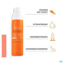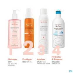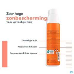 Adaptée au visage et au corps, la texture hydra-protectrice du Spray SPF 50+ offre une sensation de confort immédiate et durable, un effet anti-dessèchement et une hydratation durant six heures. Une très haute protection solaire adaptée aux peaux sensibles exposées à un ensoleillement intense. Au coeur du Spray SPF 50+ , spray solaire, l'association exclusive Sunsitive® protection, issue de la Recherche Pierre Fabre et composée : - D'un système filtrant breveté contenant seulement quatre filtres solaires, pour une très large protection UVB-UVA stable et une tolérance cutanée optimale. - De Provitamine E (Pré-tocophéryl), puissant antioxydant, pour une protection des cellules des radicaux libres. - D'Eau thermale d'Avène reconnue pour ses propriétés apaisantes, anti-irritantes et adoucissantes. Son système OPEN / STOP offre plus de praticité et de respect de l'environnement : OPEN - tournez et l'embout apparaît, STOP : tournez et l'embout disparaît.