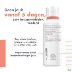 • ANTI-DÉMANGEAISONS : une efficacité reconnue par des dermatologues du Forum Européen de Dermatologie dans la prise en charge de l'eczéma atopique (catégorie "Emollient PLUS**). • RELIPIDANT : soulage les peaux très sèches sujettes à l'eczéma atopique et aux démangeaisons. • APAISANT grâce à l'Eau thermale d'Avène.