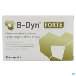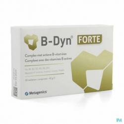 B-Dyn® Forte contient les vitamines B1, B3, B6, B12 et de la biotine, qui contribuent à une fonction normale du système nerveux et à une fonction psychologique normale. B-Dyn® Forte contient de plus la vitamine B5, qui aident avec les vitamines B1, B3, B6 et B12 à diminuer la fatigue.