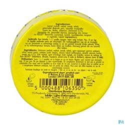 Édulcorants (sorbitol, maltitol, isomalt, xylitol), agent épaississant (gomme arabique), acidulant (acide citrique), arôme naturel (citron), colorant naturel (curcumine), agents d'enrobage (huile végétale, cire d'abeille), teinture de mélange de fleurs Rescue (hélianthème, clématite, impatiente, prunier-cerise et étoile de Bethléem), adjuvant Farine de blé. Peut contenir des traces de gluten.
