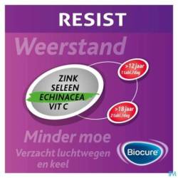 Biocure® Long Action Resist est une source de zinc, de sélénium, de vitamine C, de vitamine B3, de vitamine B6 et de deux plantes aux vertus fortifiantes : la griffe de chat (Uncaria tomentosa) et l'échinacée pourpre (Echinacea purpurea).