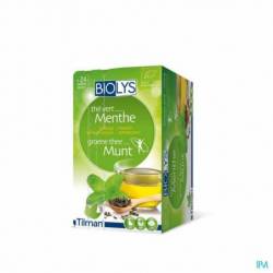 La feuille de thé vert tonifie l'esprit. La feuille de menthe exerce une action tonique et digestive.