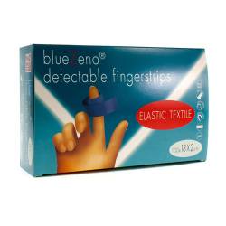 Pansement de couleur bleue avec bande métallique. Si, pendant le processus de production, un pansement tombe dans les aliments, il vous est possible de le détecter grâce à la bande métallique et ainsi de le récupérer.