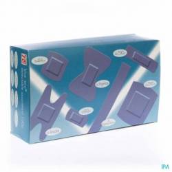 Pansement de couleur bleue avec bande métallique. Si, pendant le processus de production, un pansement tombe dans les aliments, il vous est possible de le détecter grâce à la bande métallique et ainsi de le récupérer.