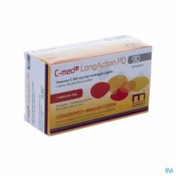 Les comprimés pelliculés C-Med® LongAction PQ contiennent 500 mg de vitamine C à libération prolongée (acide L-ascorbique, 625 % RI) complétée et enrichie de 62,5 mg de complexe de bioflavonoïdes d'agrumes pour une bonne absorption.