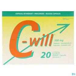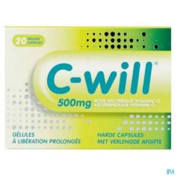 C-will est une capsule remplie de microgranules dont la vitamine C est libérée progressivement. Cela permet à l'organisme d'absorber la vitamine C sur une plus longue période. Une capsule de C-will de 500 mg par jour pourrait suffire.
