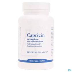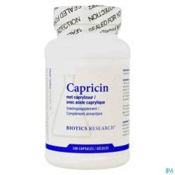 Composition par 4 gélules: 1.600 mg Acide caprylique (caprylate de calcium et de magnésium) - Source: l'huile de noix de coco/Cocos nucifera*** 133,3 mg Calcium (caprylate) - 17%** 66,7 mg Magnésium (caprylate) - 5%** Ingrédients: Agglutinant: microcristalline, Gélule: Gélatine, Caprylate de calcium, Caprylate de magnésium, Gélule: Eau; Glycérine **AR: Apport de référence pour un adulte-type (8400kJ/2000 kcal) ***AR pas déterminé