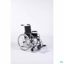 Fauteuil compact robuste en acier. Déport des roues arrières pour une grande stabilité. Roues arrières à démontage rapide. Fauteuil très résistant, idéal pour parc locatif.