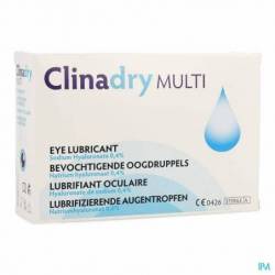 Clinadry Multi est un collyre stérile, sans conservateur, contenant 0,4 % d'acide hyaluronique sodique de haut poids moléculaire, obtenu par synthèse biotechnologique. Le hyaluronate de sodium possède des propriétés mucomimétiques, mucoadhésives et viscoélastiques qui améliorent la stabilité du film lacrymal et maintiennent la surface oculaire lubrifiée, hydratée et protégée.