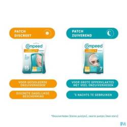 Également disponible: Compeed® Anti-imperfections* Discret, à utiliser la journée. Contient 15 patchs pour dissimuler discrètement les imperfections isolées.