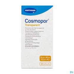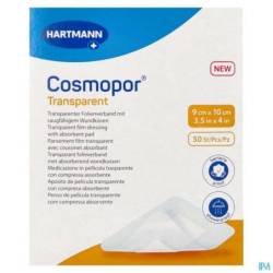 Cosmopor® Transparent est un pansement stérile, autocollant et transparent avec un tampon absorbant pour la plaie, composé d'un film de polyuréthane semi-perméable, résistant à l'eau et transparent, recouvert d'une couche adhésive de polyacrylate. Le film de polyuréthane semi-perméable est recouvert d'une couche adhésive respectueuse de la peau.