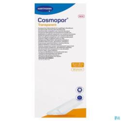 Cosmopor® Transparent est un pansement stérile, autocollant et transparent avec un tampon absorbant pour la plaie, composé d'un film de polyuréthane semi-perméable, résistant à l'eau et transparent, recouvert d'une couche adhésive de polyacrylate. Le film de polyuréthane semi-perméable est recouvert d'une couche adhésive respectueuse de la peau.