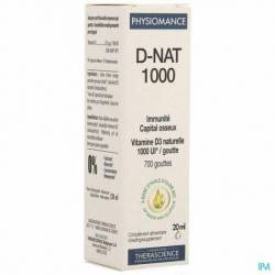 PHYSIOMANCE D-NAT 1000 apporte 1 000 UI* (25 μg) de vitamine D3 naturelle par goutte, sous une forme naturelle et biodisponible.
