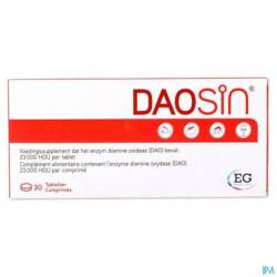 DAOSiN® est un supplément contenant l'enzyme diamine oxydase (DAO) qui aide vos intestins à décomposer l'histamine provenant des aliments. DAOSiN® complète l'enzyme DAO propre à l'organisme pour favoriser la dégradation de l'histamine.