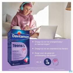 Conservation: Conserver à une température ambiante (15-25 °C) dans un endroit sec, à l'abri de la lumière, dans l'emballage d'origine. Après la première ouverture du flacon, Davitamon Teens se conserve encore 6 mois. Conserver hors de la portée des jeunes enfants.