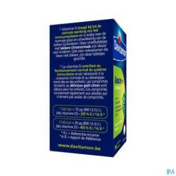 Agent de charge (mannitol, amidon de maïs (Zea mays L.)); Vitamine D3 (cholécalciférol); Anti-agglomérant (sels de magnésium d'acides gras); Acidifiant (acide citrique); Arôme de citron.