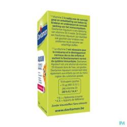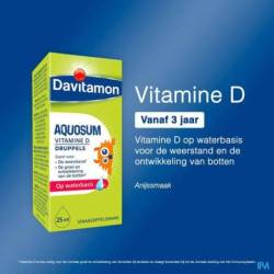 Davitamon® Aquosum Vitamine D est une solution de vitamine D3 dissoute dans de l'eau. La vitamine D est nécessaire pour la croissance et le développement normaux des os des enfants et soutient le fonctionnement normal du système immunitaire. Les gouttes Davitamon® Aquosum Vitamine D conviennent donc également aux enfants qui ont du mal à ingérer des substances grasses.