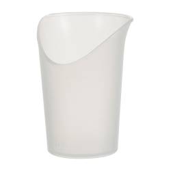 Posez le rebord du gobelet sur la lèvre pour éviter l'écoulement. Le parent peut surveiller facilement que l'enfant ne prenne pas de trop grandes gorgées.