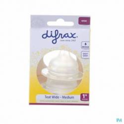 La tétine Difrax Wide Medium pour le biberon S Wide possède un bout rond et souple de la forme d'un mamelon, qui rappelle le sein maternel, permettant de combiner facilement alimentation maternelle et de substitution.