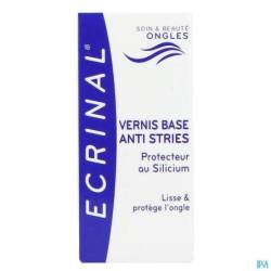 ECRINAL® Vernis Base Anti-stries lisse les irrégularités à la surface de l'ongle. L'ongle est également recouvert d'une couche protectrice qui le protège du jaunissement causé par les vernis à ongles colorés et la cigarette. Enfin, ce vernis protège l'ongle en lui apportant des éléments fortifiants et protecteurs contre le vieillissement et les agressions chimiques ou physiques.