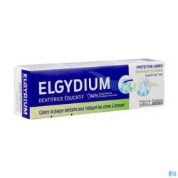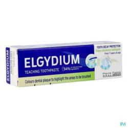 Le dentifrice éducatif ELGYDIUM colore la plaque en vert (colorant alimentaire) pour indiquer les zones à brosser et ne disparaît que lorsque cette opération est correctement effectuée. L'indicateur de plaque ELGYDIUM est le premier et le seul dentifrice éducatif du marché. Il est composé de 94% d'ingrédients d'origine naturelle et peut être utilisé en alternance avec un dentifrice classique.