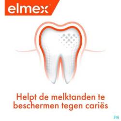 Prenez soin des dents de lait de votre enfant et brossez-lui les dents avec le dentifrice elmex pour enfants 2-6 ans, une bonne préparation pour des dents d'adulte saines. Ce dentifrice pour enfants à 1000 ppm de fluor* respecte les gencives de votre enfant et contient du Neo-Aminex : la dernière technologie amine + fluor. La technologie de ce dentifrice pour enfants protège efficacement contre les caries et forme une couche protectrice de fluorure de calcium sur l'émail des dents. Le dentifrice pour enfants ré-enrichit l'émail en minéraux perdus à cause des caries et rend les dents plus résistantes à la perte de minéraux liée aux caries.