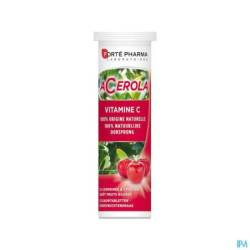 Ingrédients format 12 comprimés : édulcorants (sorbitol, sucralose), extrait sec d'acérola ( Malpighia glabra L. ) (480 mg) titré en vitamine C, colorant (rouge betterave), arôme naturel de fruits rouges, anti-agglomérant (sels de magnésium d'acides gras).