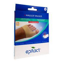 Epitact® a créé une protection hallux valgus comportant une pastille de gel d'Epithelium 26® permettant de limiter les pressions et les frottements au niveau de " l'oignon ". Ainsi, la douleur est soulagée et la formation de callosités évitée.
