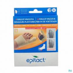 L'Orthèse corrective double de l'hallux valgus permet de limiter l'évolution de l'hallux valgus, de soulager les douleurs liées à cette déformation tout en protégeant la zone sous l'avant pied présentant souvent de la corne ou des signes d'échauffements.