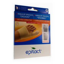 Pour limiter l'évolution de l'hallux valgus tout en soulageant les douleurs articulaires, l'orthèse corrective souple EPITACT® agit lors de la marche sur tous les facteurs aggravant la déformation. Elle a été spécialement conçue pour s'adapter à toutes les chaussures.