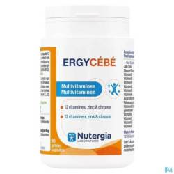 ERGYCÉBÉ est un complexe multivitaminé dans une capsule végétale à base de pullulan (issu du tapioca). La formule contient 12 vitamines, dont toutes les vitamines du groupe B, et 2 minéraux.