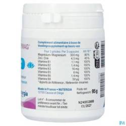 Complément alimentaire riche en magnésium marin, en vitamine B et en zinc.