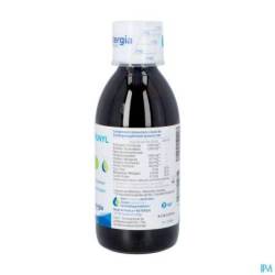 Solution liquide d'oligo-éléments (eau filtrée, eau de mer dessalée concentrée, extrait de lithothamne breveté standardisé - Phymatolithon calcareum Pall, chlorure de zinc et de chrome, sulfate de manganèse et de cuivre, gluconate de zinc, de fer et de cuivre, sélénite et molybdate de sodium), stabilisant : glycérine végétale ; extrait d'olivier (Olea europaea subsp. europaea), échinacée (Echinacea purpurea (L.) Moench et Echinacea angustifolia DC), l'achillée millefeuille (Achillea millefolium L.), le plantain (Plantago lanceolata L.), romarin (Rosmarinus officinalis L.) et pépins de pamplemousse (Citrus grandis (L.) Osbeck), arôme naturel, conservateur : sorbate de potassium.