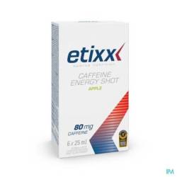 Etixx Caffeine Energy Shot contient de la caféine (80 mg par flacon) qui contribue à augmenter la concentration, le focus et la vigilance. Il assure un booster d'énergie mental ainsi que physique avant et pendant l'entraînement.