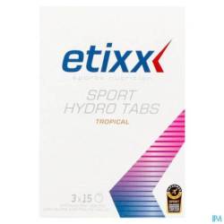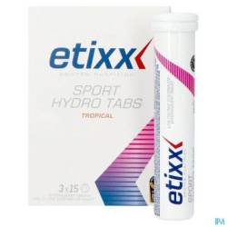 Etixx Sport Hydro Tab va combler les quatre électrolytes importants perdus (sodium, potassium, calcium et magnésium) selon un rapport équivalent à celui où ils se retrouvent dans la transpiration. Ce comprimé effervescent faible en calories a été spécialement développé pour combler entièrement la perte en électrolytes afin d'éviter la déshydratation en cas de températures tropicales et en particulier pour les "salty sweaters".