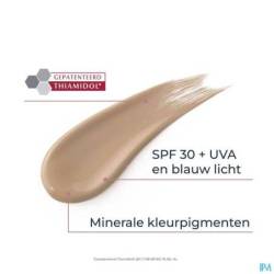 La protection SPF 30 + UVA prévient efficacement la formation de futures taches brunes induites par le soleil et les UV. Les pigments minéraux colorés se fondent instantanément sur la peau. Ils couvrent les taches brunes et donnent au teint une apparence unifiée et d'un éclat naturel.